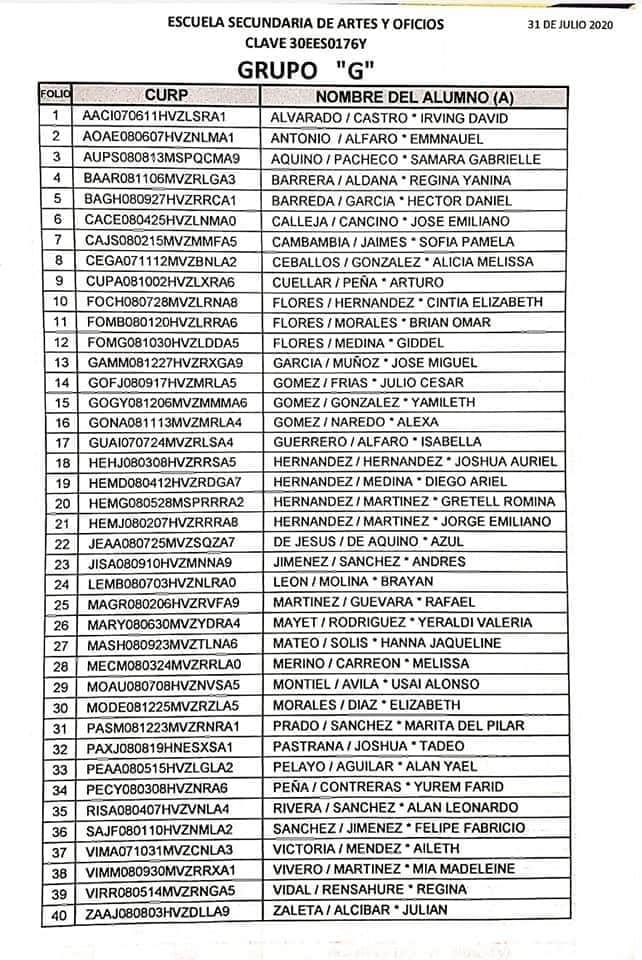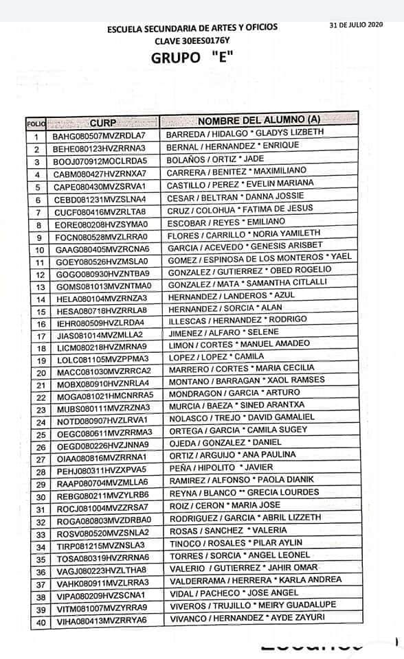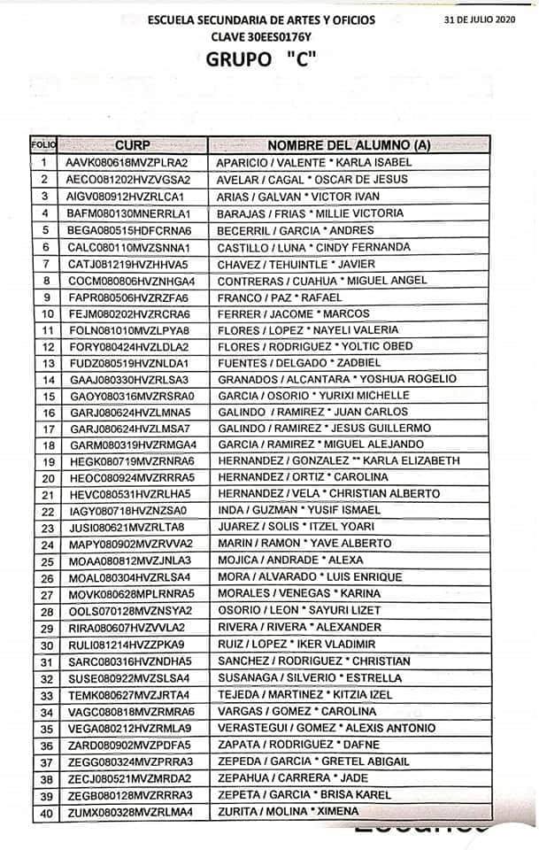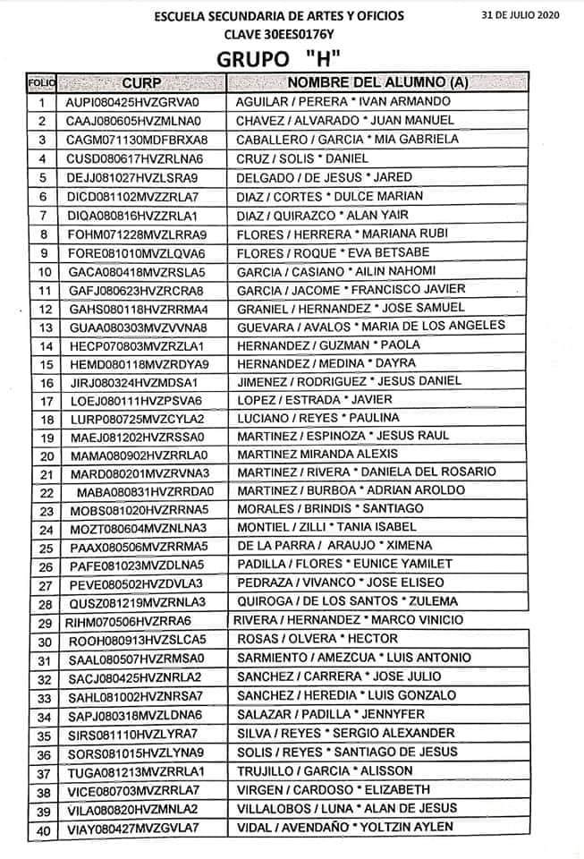 La Dirección de la Escuela explicó que el proceso de selección se efectuó considerando el promedio de primaria, esto debido a que los exámenes de ingreso fueron cancelaos por la pandemia del Coronavirus.