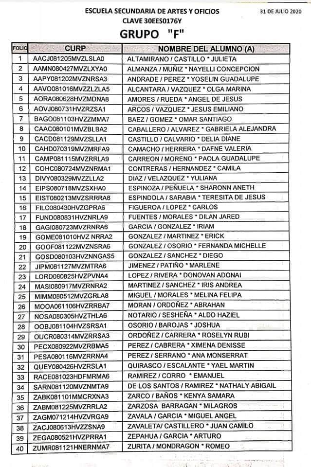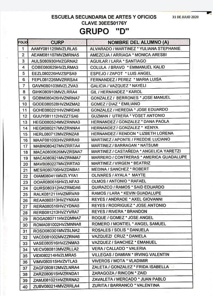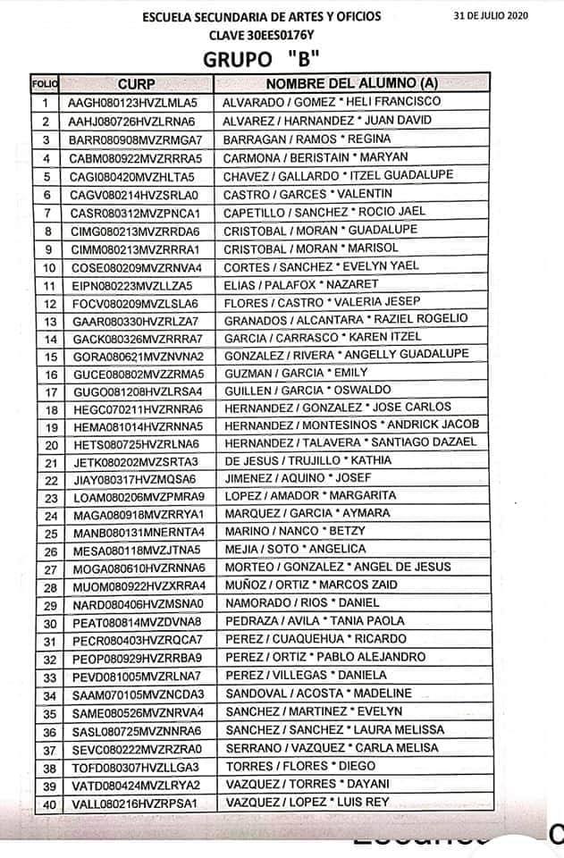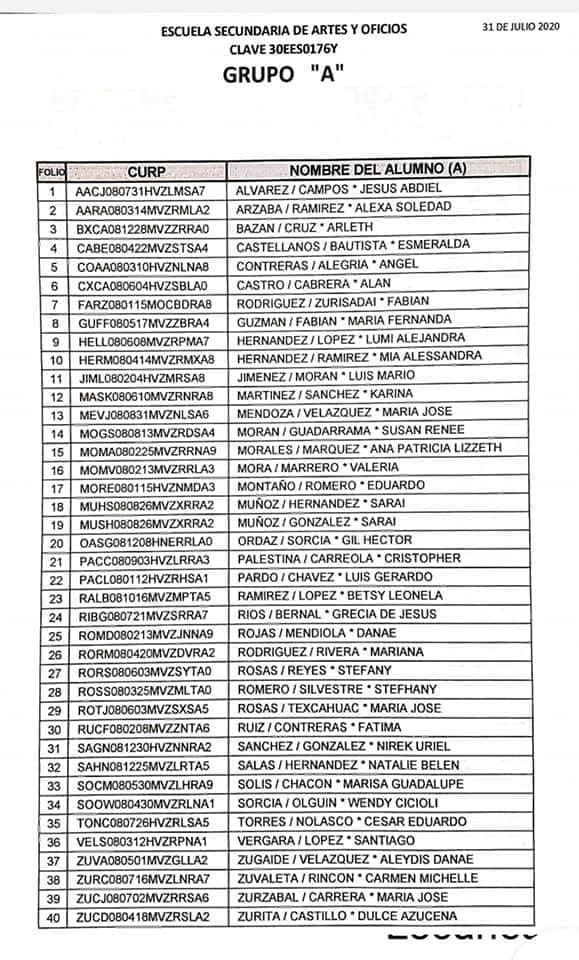 Córdoba, Ver. – La Escuela Secundaria Artes y Oficios (Esao) dio a conocer la lista de los aceptados a primer grado para el ciclo escolar 2020-2021.
