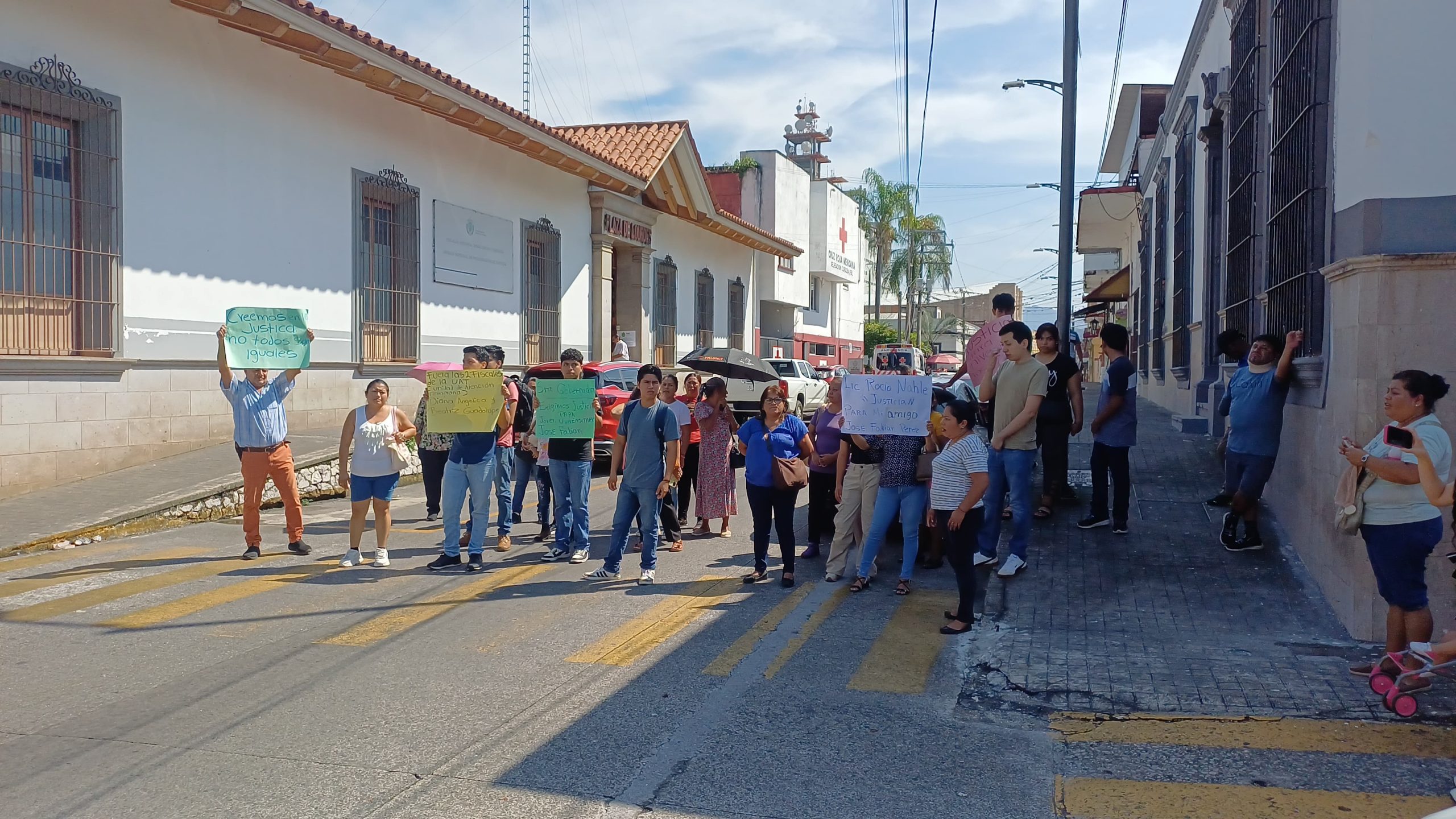 Córdoba, Ver. — Entre reclamos y protestas, la madre de José Fabián Araceli Pérez Jiménez, junto con colonos de La Antorcha, se congregaron frente a la Unidad de Atención Temprana de la Fiscalía Regional en Córdoba para exigir la destitución de las fiscales Beatriz y Adriana.