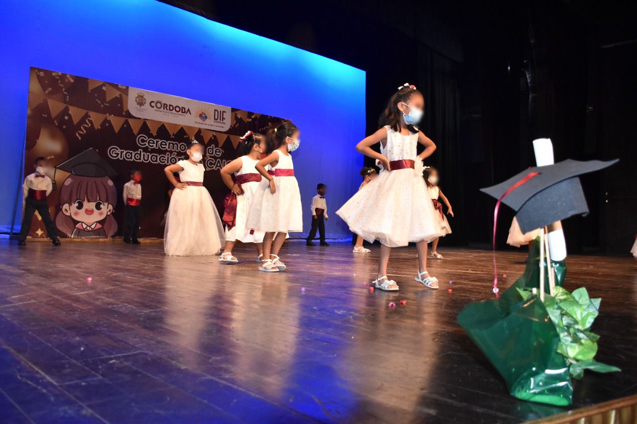 Córdoba, Ver. – Con la participación de 48 niñas y niños, este martes 26 de julio se llevó a cabo en el Teatro Pedro Díaz, la entrega de reconocimientos a los alumnos graduados de educación preescolar de los Centros de Atención Infantil Comunitarios (CAICS) Hormiguitas, Mi Ilusión y Mundo Mágico.