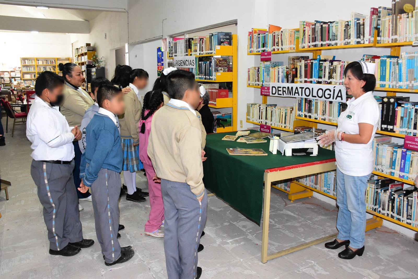 Fortín, Ver. – En conmemoración al Día Internacional del Libro, este martes el H. Ayuntamiento de Fortín realizó la actividad “El Hospital del Libro” en la cual, alumnas y alumnos de la primaria Gral. Cándido Aguilar, Antonio Ruiz Galindo y el jardín de niños Judith Rivera de Rangel, dieron un recorrido en las instalaciones de la biblioteca municipal Antonio M Quirasco, allí el personal simuló cada una de las áreas que componen un hospital y mostró el cuidado de los libros con el objetivo de fomentar su lectura, su protección pero sobre todo la riqueza en conocimiento que tienen.