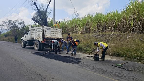 Las cuadrillas realizan la rehabilitación de tramos específicos mediante el relleno y compactación de baches, con el fin de prolongar la vida útil del pavimento y reducir afectaciones a vehículos que transitan diariamente por la zona.