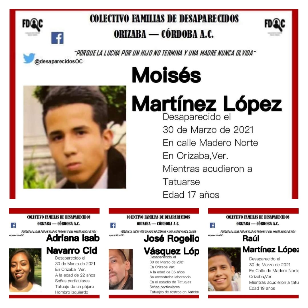 Orizaba, Ver. – El Colectivo de Familias Desaparecidas Córdoba-Orizaba confirmó que son cuatro los jóvenes ‘levantados’ ayer dentro de un negocio de tatuajes.