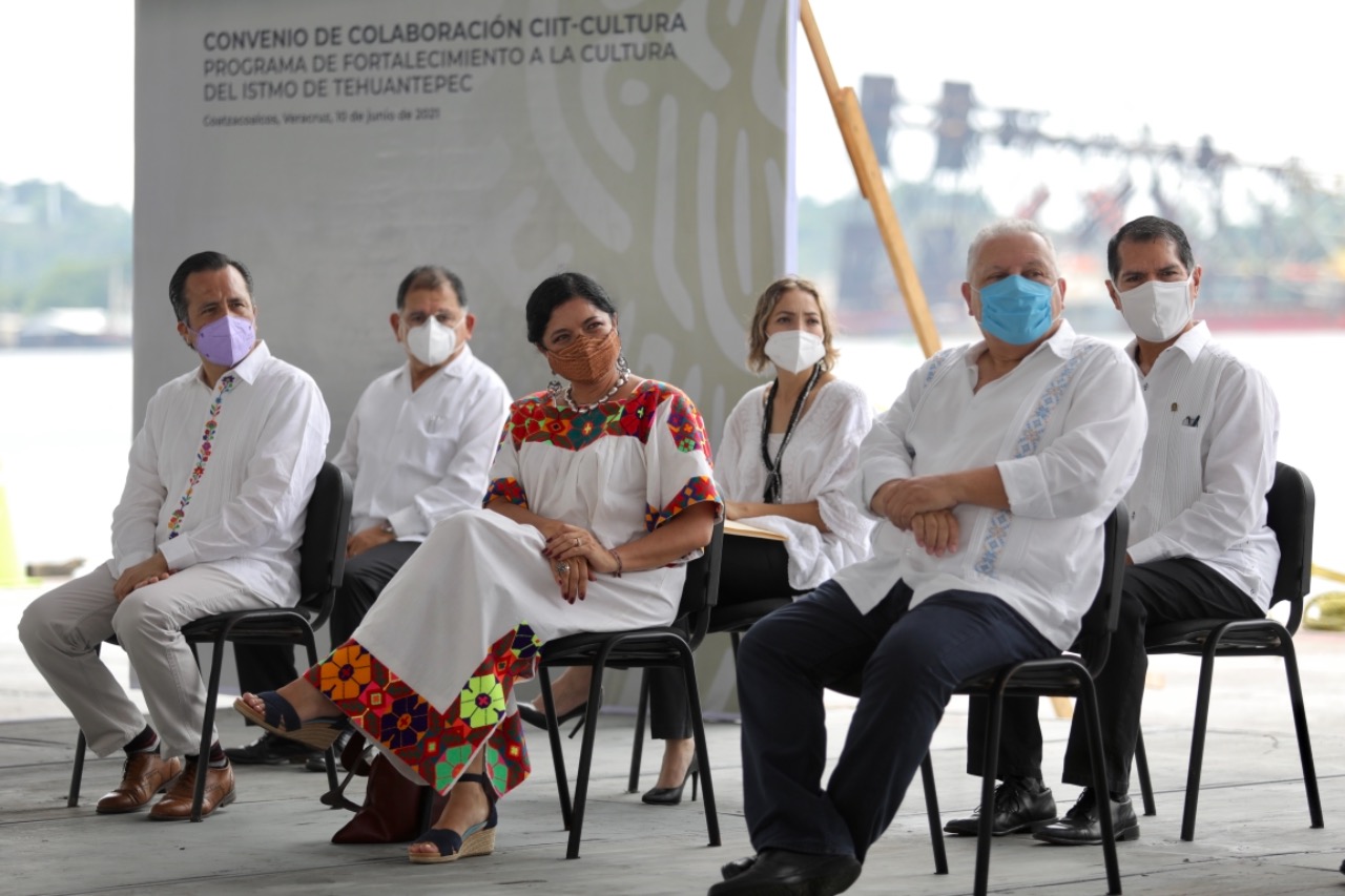 Coatzacoalcos, Ver.- En esta administración, los proyectos de inversión industrial y comercial van acompañados de atención integral a las necesidades del pueblo, con respeto total a la cultura, afirmó el gobernador Cuitláhuac García Jiménez al fungir como testigo de honor en la firma del convenio de colaboración entre la Secretaría de Cultura y el Corredor Interoceánico del Istmo de Tehuantepec (CIIT).