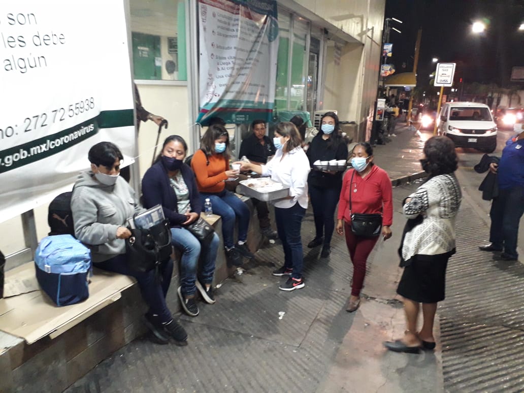 Acompañada de grupo de voluntarios de la AC, llegó puntual al caer la tarde para ofrecer de manera voluntaria y gratuita, el vaso de café acompañado de una pieza de pan a gran número de personas, algunas de las cuales llevan ya varios días en las afueras de los nosocomios, esperan que sus familiares superen la enfermedad que los mantiene en una cama de hospital, y ante lo cual los recursos económicos escasean para quienes están a la espera de buenas noticias.