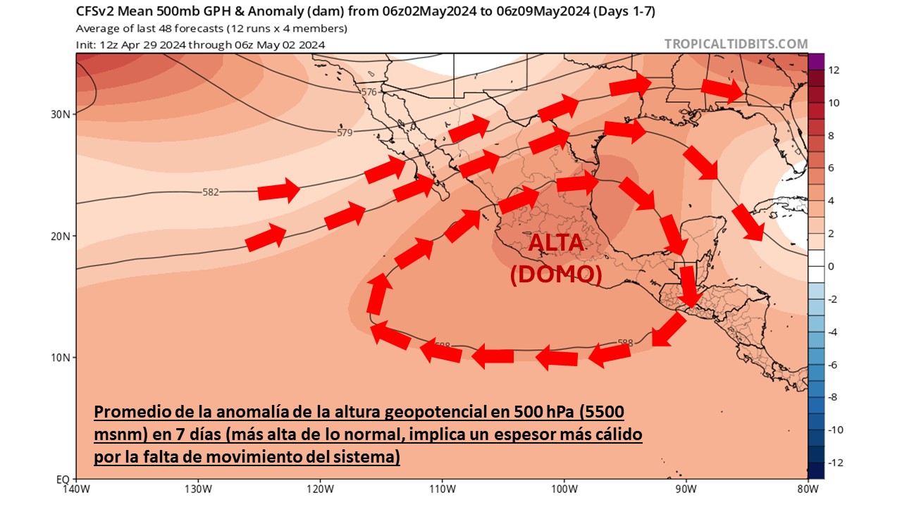 Esta configuración atmosférica resultará en la atracción y retención del calor generado por los sistemas de baja presión en la superficie, creando así una #OlaDeCalor significativa.