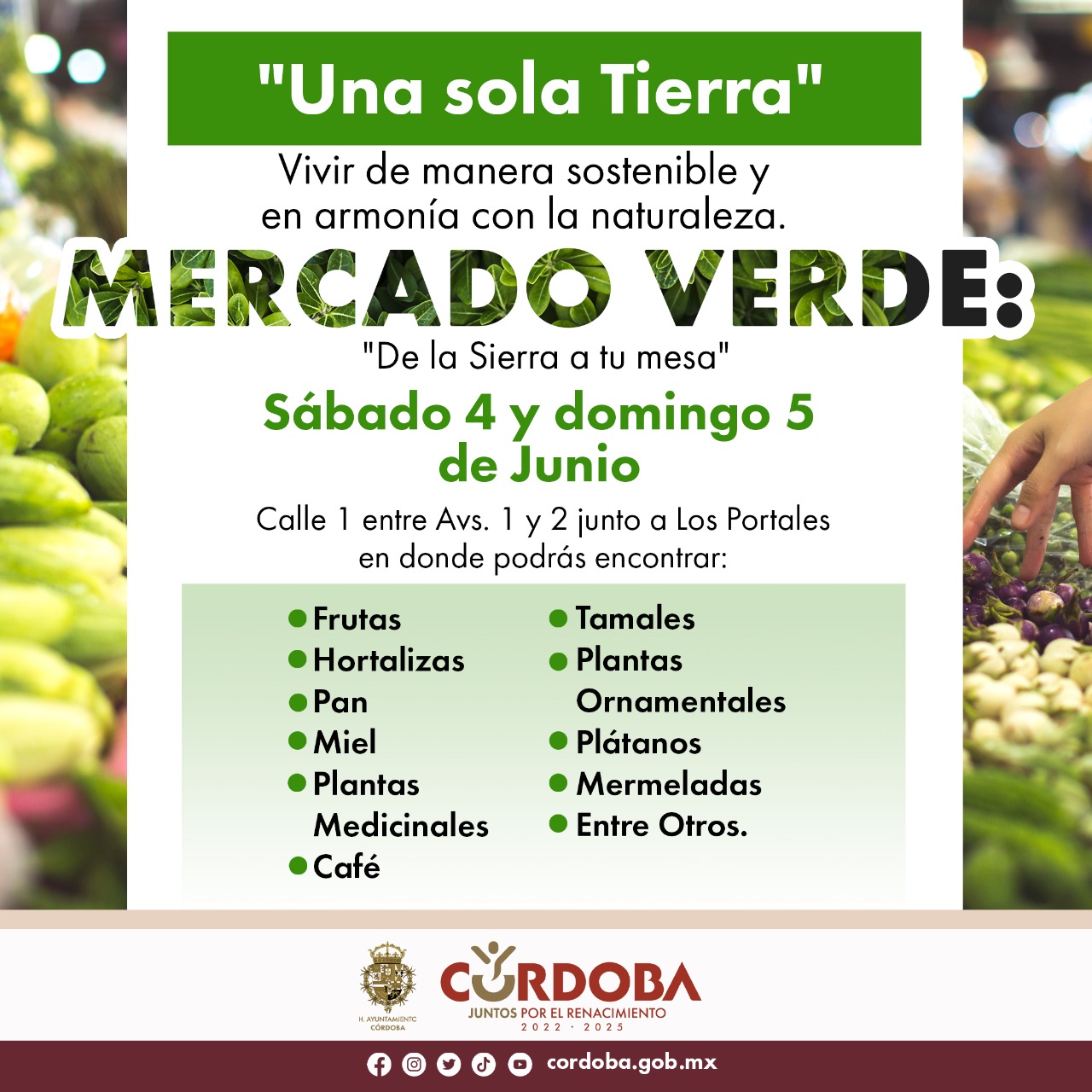 La jefa de Ecología y Medio Ambiente, Tayde González López, informó que durante el 4 y 5 de junio se colocará este mercado verde sobre la calle 1 entre avenidas 1 y 2, junto a Los Portales donde la población podrá encontrar frutas, hortalizas, pan, miel, plantas medicinales, café, tamales, plantas ornamentales, plátanos, mermeladas, y otras cosas más provenientes de la Sierra.