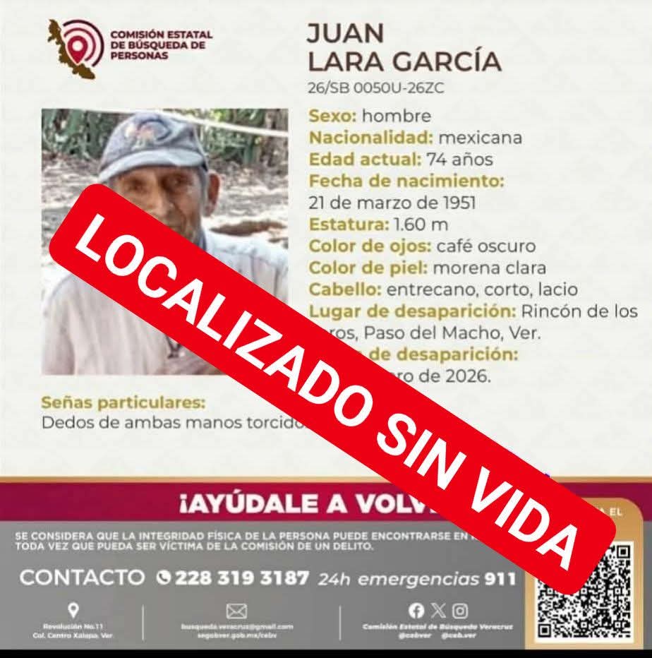 Paso del Macho, Ver.— Tras más de un mes de permanecer desaparecido, fue localizado sin vida y en avanzado estado de descomposición el adulto mayor que era buscado por sus familiares desde el pasado 6 de enero en la comunidad de Rincón de los Toros.