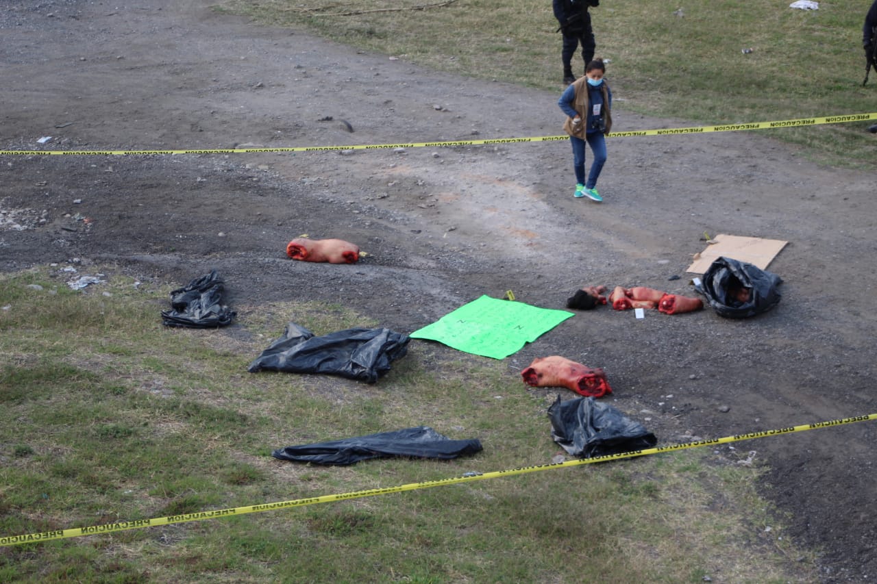 Al lugar arribaron elementos de la policía estatal de Ciudad Mendoza; los policías encontraron varias bolsas de basura en cuyo interior se encontraban los cuerpos descuartizados de dos personas.