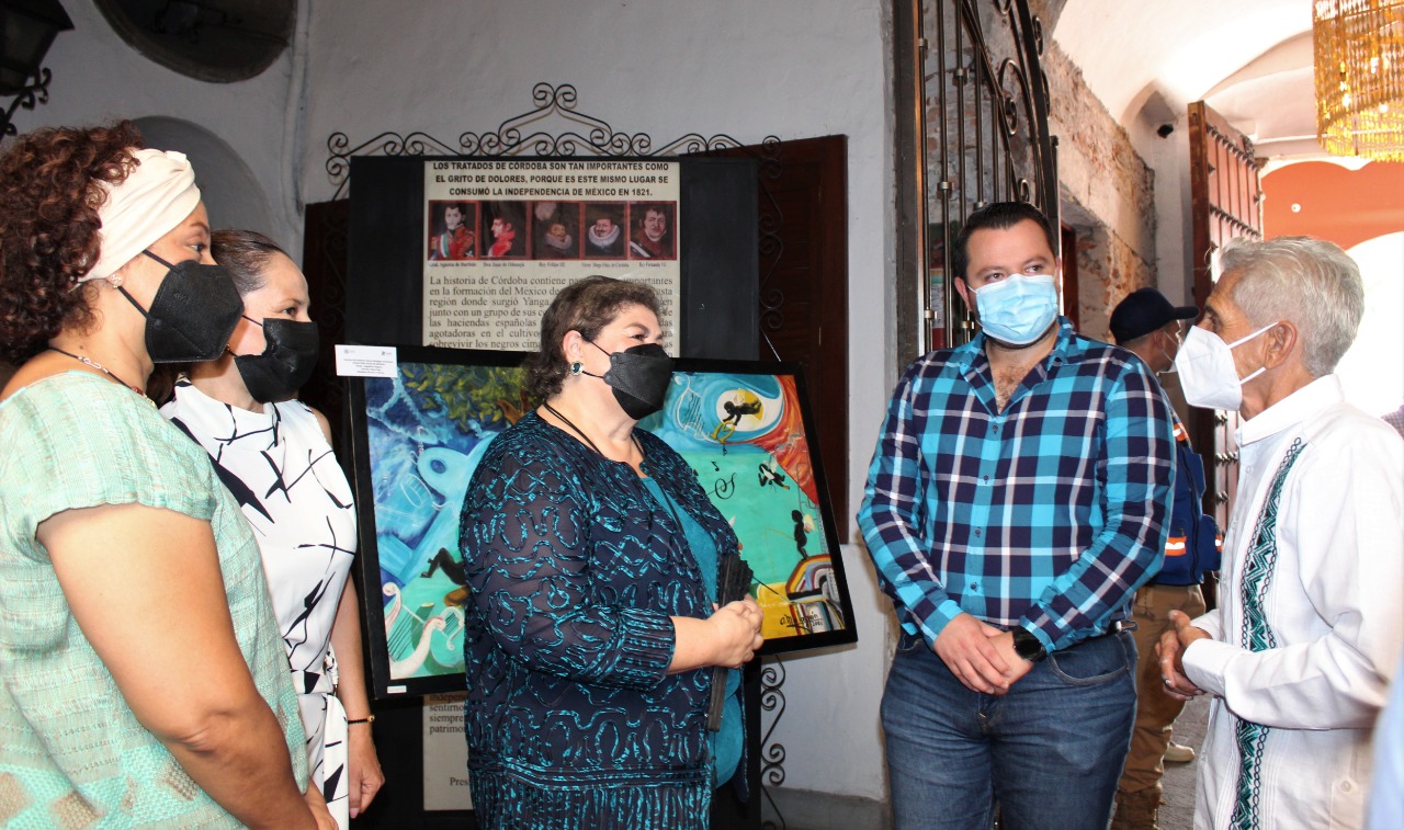 Córdoba, Ver. – La presidenta municipal de Córdoba, Leticia López Landeros; el presidente municipal de Yanga, Apolinar Crivelli Díaz y la presidenta del Patronato del Museo de Córdoba, Marisol Córdoba Castañeda, participaron en el corte del listón inaugural de la exposición del maestro Oscar Malagón Contreras, quien, por medio de sus pinturas, preserva y difunde la historia y cultura del Primer Pueblo Libre de la Esclavitud en América.