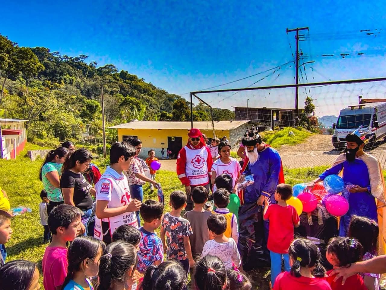 Córdoba, Ver..— Integrantes de la Coordinación Local de Juventud de la Cruz Roja Mexicana, delegación Córdoba, realizaron una jornada solidaria en la comunidad de San Aparicio, donde entregaron juguetes, ropa y calzado a niñas, niños y madres de familia con motivo del Día de Reyes.