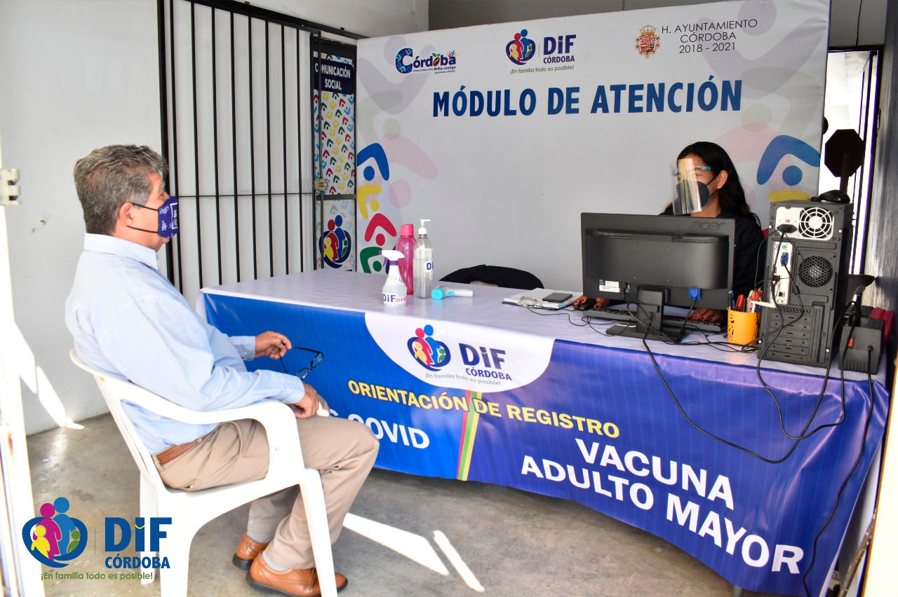 Córdoba, Ver. – Con la finalidad de orientar a los adultos mayores a registrarse en la plataforma de vacunación COVID 19, el Sistema Municipal para el Desarrollo Integral de la Familia que preside Isaac Luz López, instaló este lunes 5 módulos de atención que darán asesoramiento a los adultos mayores que hasta el momento no han podido realizar su registro.