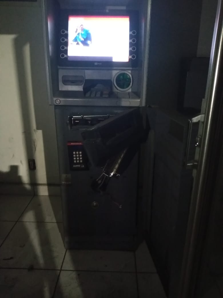 Al ver que se les complicó el robo, los ladrones dejaron dañado el cajero automático de la empresa Banorte.