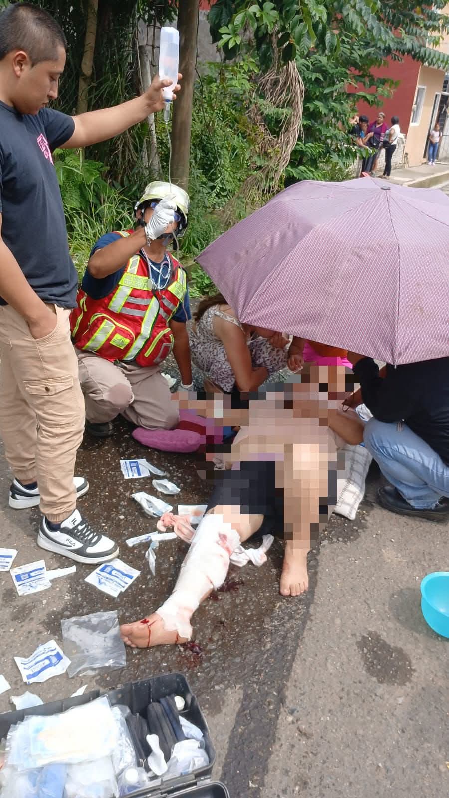 La víctima, una ama de casa, quedó tendida gravemente herida frente a la mirada desesperada de sus hijas, quienes corrieron en busca de ayuda. Paramédicos de Rescatistas Primeros Respondientes acudieron de inmediato para brindarle atención prehospitalaria, mientras que autoridades municipales desplegaron un operativo para intentar ubicar al agresor, sin éxito hasta el momento.