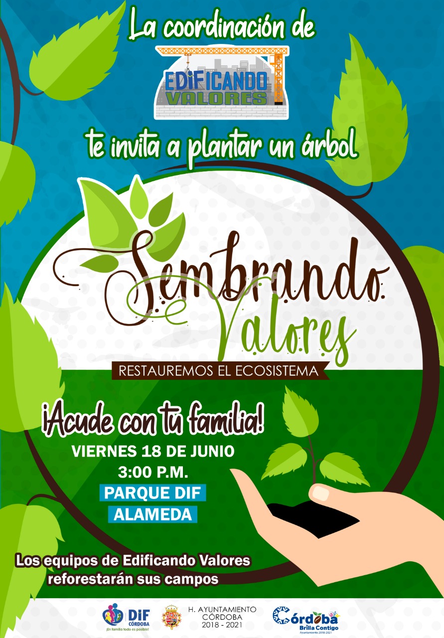 Córdoba, Ver. – Al ser la conciencia, el respeto y la responsabilidad al medio ambiente uno de los valores que se busca reforzar en nuestras niñas y niños cordobeses, el Sistema Municipal para el Desarrollo Integral de la Familia (SMDIF), a través de la coordinación de Edificando Valores invita a la ciudadanía en general a su Campaña de Reforestación “Sembrando Valores”.