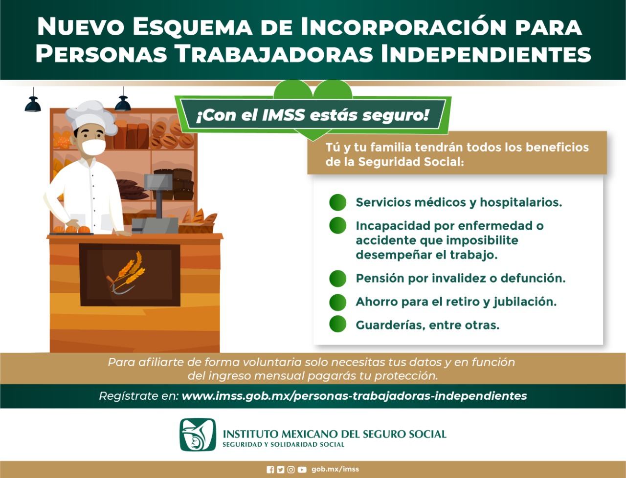 “El IMSS ha dispuesto un esquema integral de Seguridad Social simplificado para la incorporación voluntaria al Régimen Obligatorio de este sector de la población. Quienes se afilien al esquema disfrutarán de servicios médicos, hospitalarios, farmacéuticos y atención obstétrica, incapacidades, pensión por invalidez y vida, prestaciones sociales dentro de las que se encuentran velatorios y guarderías”, detalló el funcionario del IMSS.