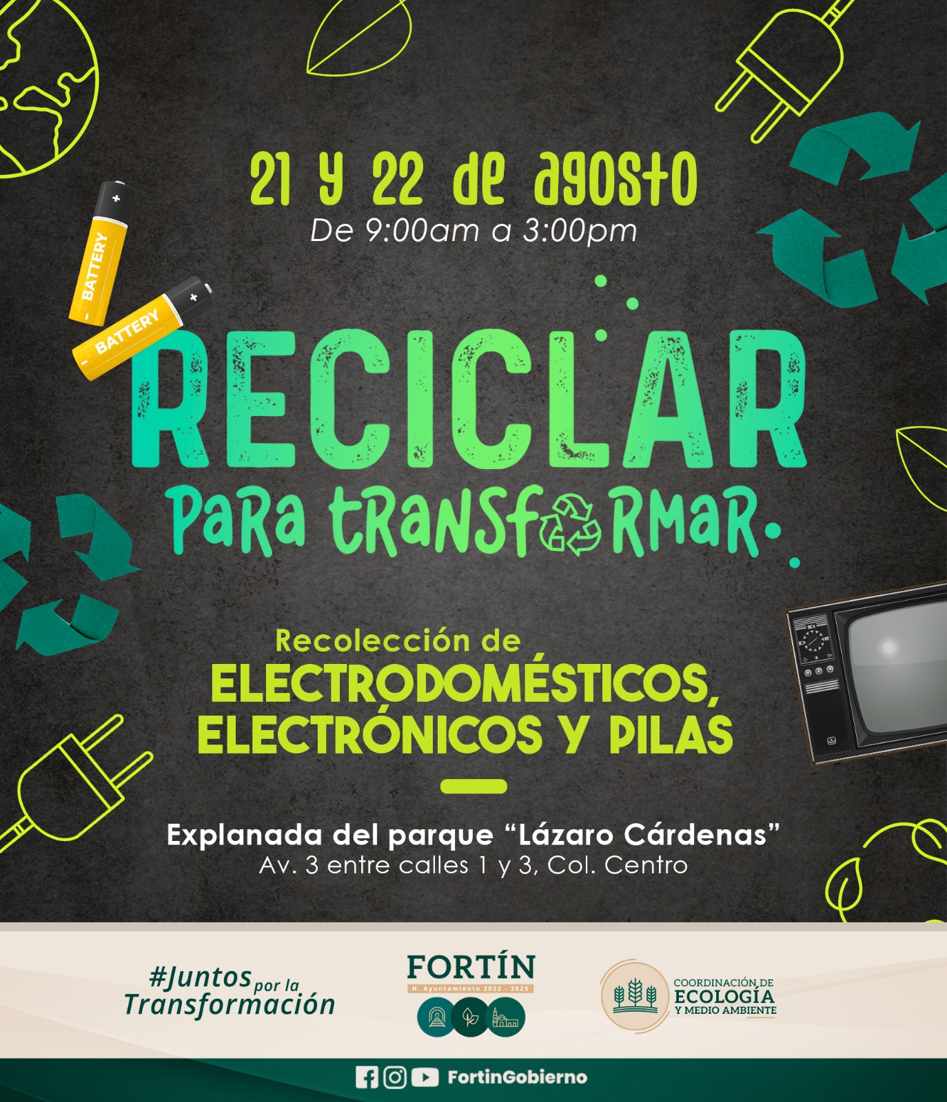 Fortín, Ver. – Con la finalidad de proteger el medio ambiente y sumar esfuerzos en conjunto sociedad y gobierno, el Ayuntamiento a través de la coordinación de Ecología y Medio Ambiente, llevarán a cabo la campaña “reciclar para transformar” los días 21 y 22 de agosto.