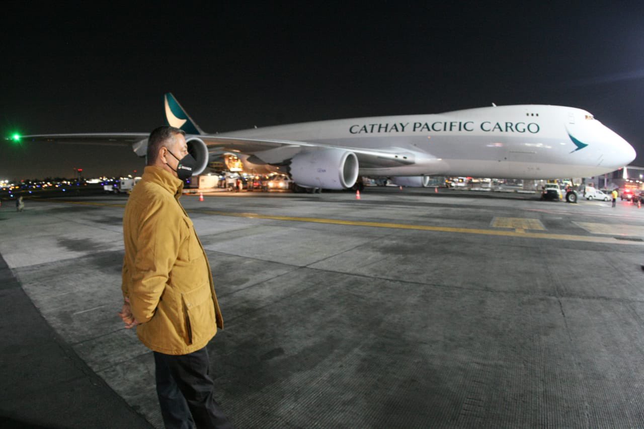 El avión con el cargamento de vacunas proveniente de la República Popular de China, llegó al Aeropuerto Internacional de la CDMX aproximadamente a las 4:00 de la madrugada.