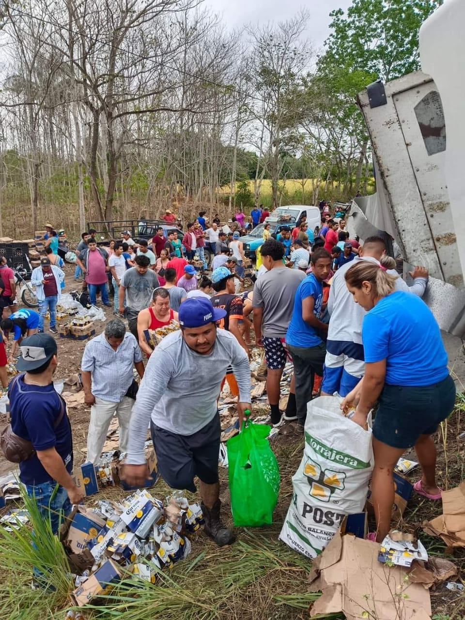 *La Tinaja, Ver. – La mañana de este viernes, un camión de doble remolque que transportaba una carga considerable de cerveza se accidentó en el tramo carretero La Tinaja-Tierra Blanca, lo que desencadenó un acto de rapiña por parte de los habitantes de la zona y conductores que pasaban por el lugar.