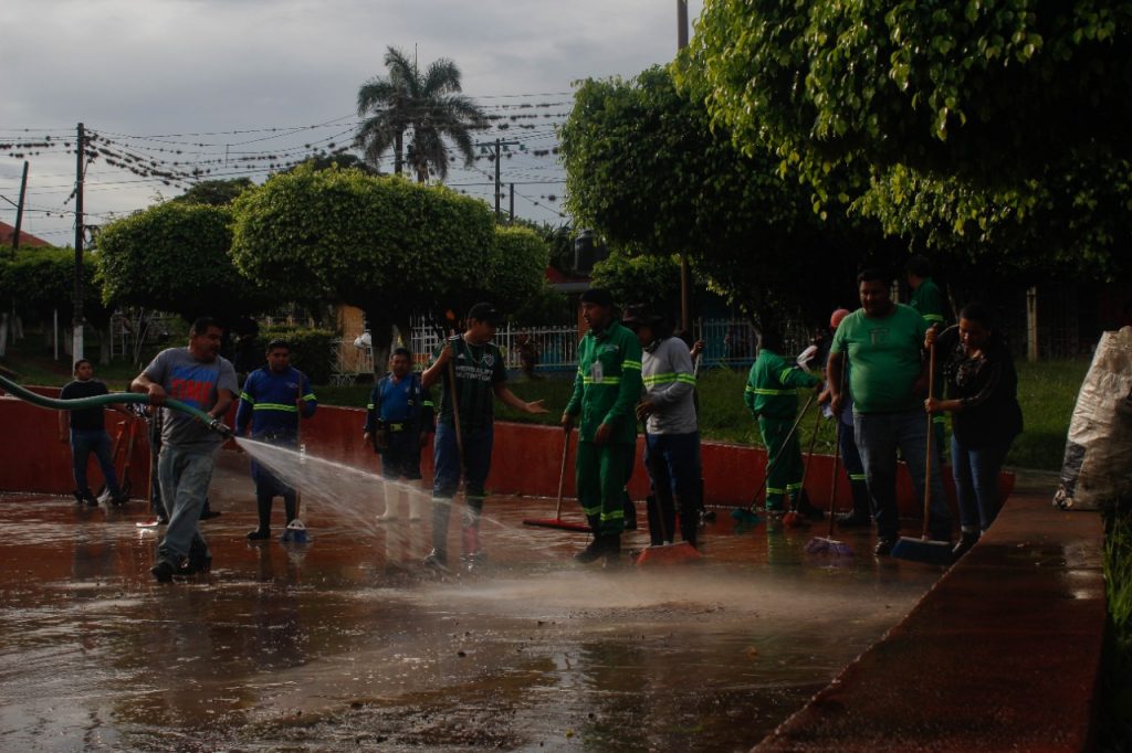 Aunque los trabajos iniciaron desde la noche del domingo, este lunes, los trabajadores de Servicios Municipales continuaban laborando en la zona del parque hundido para limpiar el lodo y basura dejada por la tormenta y normalizar el lugar para beneficio de la población.