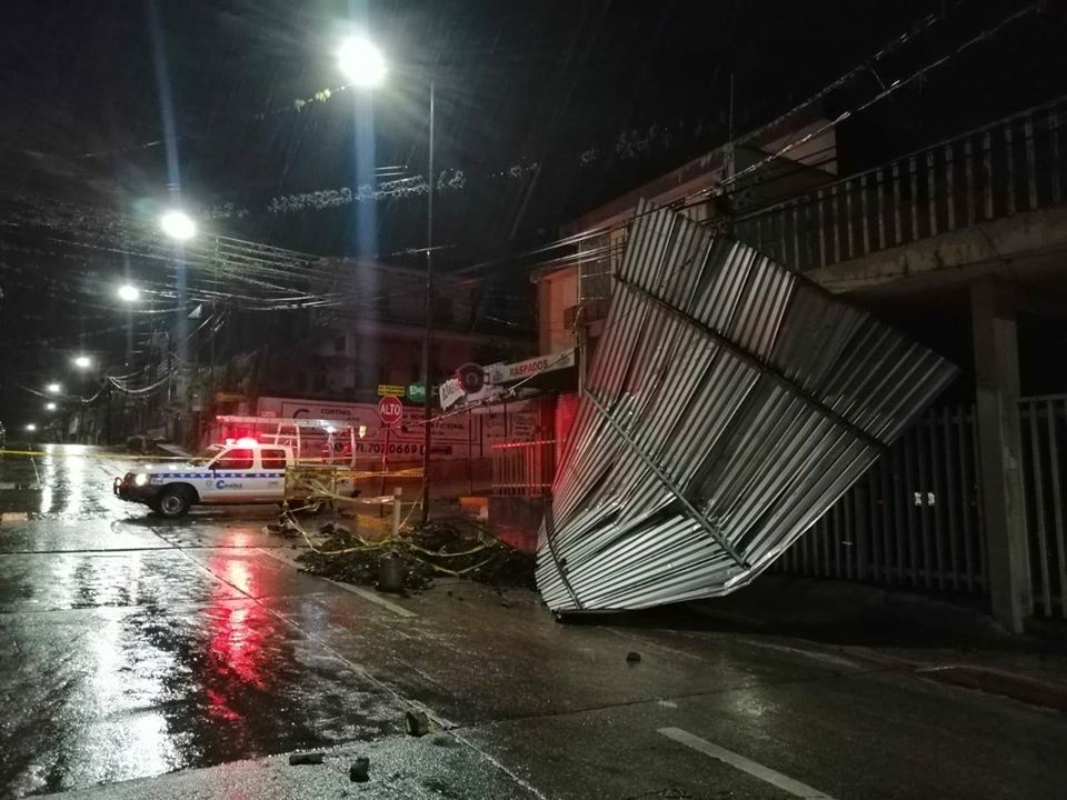En la calle 6, entre avenidas 5 y 7, un techado de lámina cayó en vía pública, dañando el cableado de una empresa de servicio de internet, quedando cerrado el tráfico para prevenir accidentes.