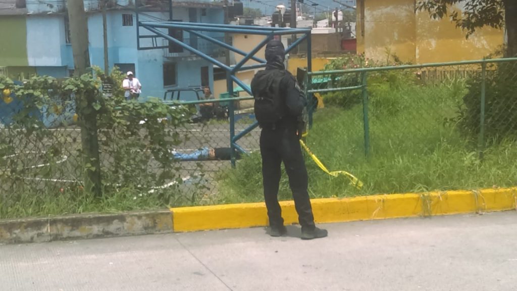 El cuerpo, el cual vestía una playera negra, un pantalón de mezclilla azul y tenis de color negro, quedó tendido en la cancha deportiva ubicada en la calle 2 y avenida El Trébol, a un costado de la autopista Córdoba-Orizaba.