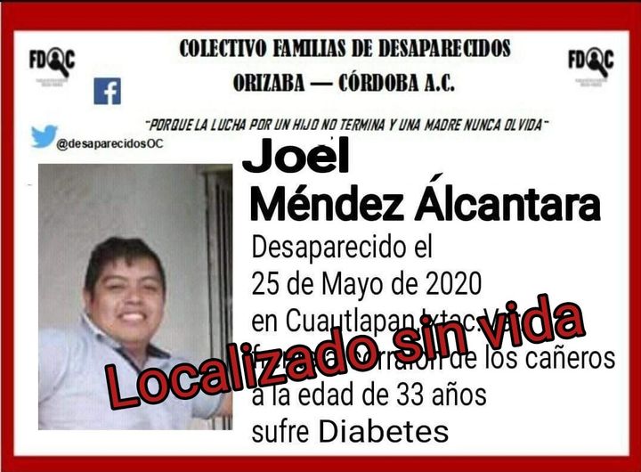 El joven fue visto por última vez el 25 de mayo de 2020 por el corralón de los camiones cañeros, en Cuautlapan, Ixtaczoquitlán.