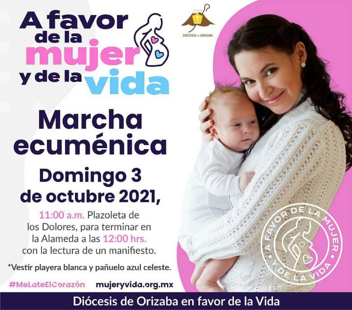 Orizaba, Ver. – El día 3 de octubre se llevará a cabo una marcha Nacional a Favor de la Mujer y la Vida, donde estarán participando La Diócesis de Orizaba, la Conferencia del Episcopado Mexicano y demás Diócesis del país, así como la participación de la ciudadanía, donde se busca integrar las causas y no sepáralas, donde se deben defender los derechos de todo ser humano y no de un sector.