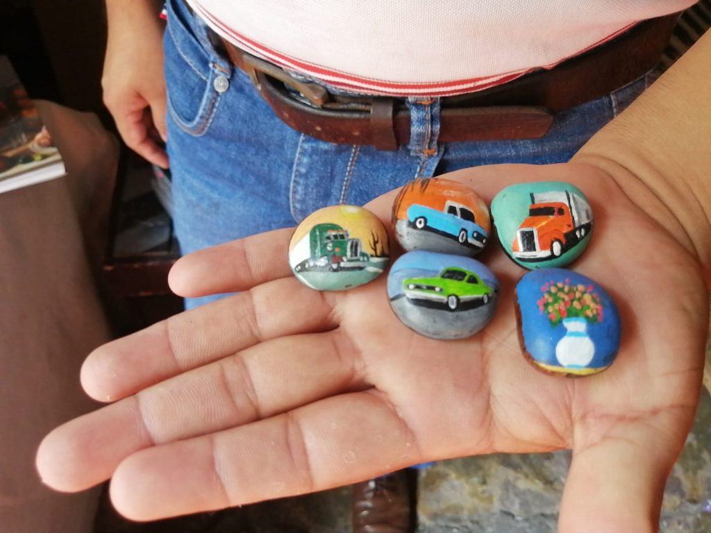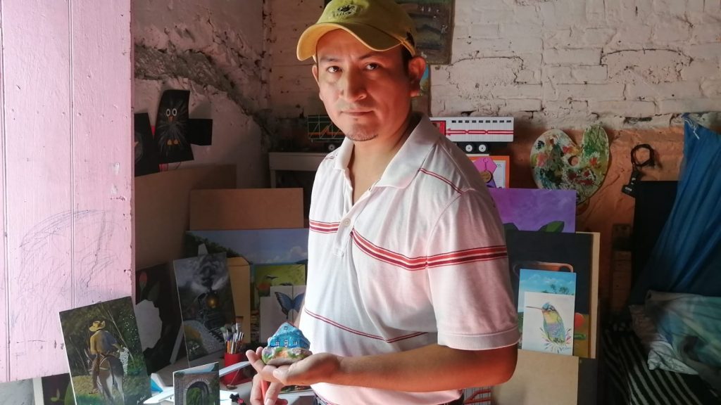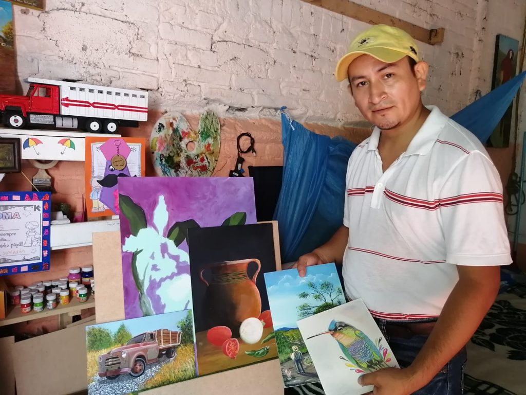 Pero no sólo es la pintura lo que él sabe hacer; pues esa destreza por las manualidades lo ha llevado a crear camiones, avionetas y animales a escala, creadas con madera y basura reciclaba.