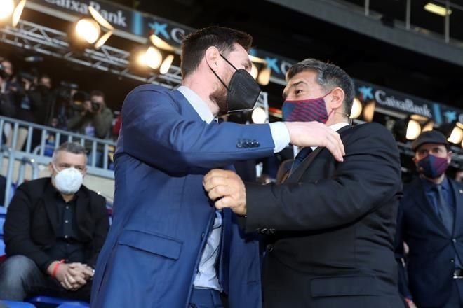 Barcelona, España.- Joan Laporta no se aguantó las ganas de hacer un llamamiento para que Lionel Messi se quede en el Barcelona, con todo y la “Pulga” presente.