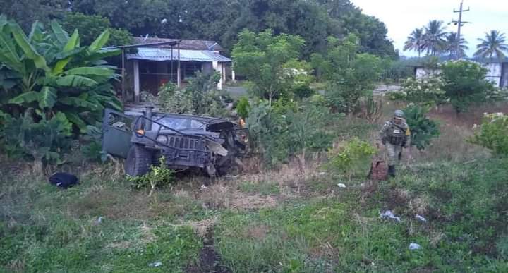 Un elemento del Ejército Mexicano murió en lugar, tres militares quedaron heridos de gravedad, junto con el conductor de la camioneta doble cabina.