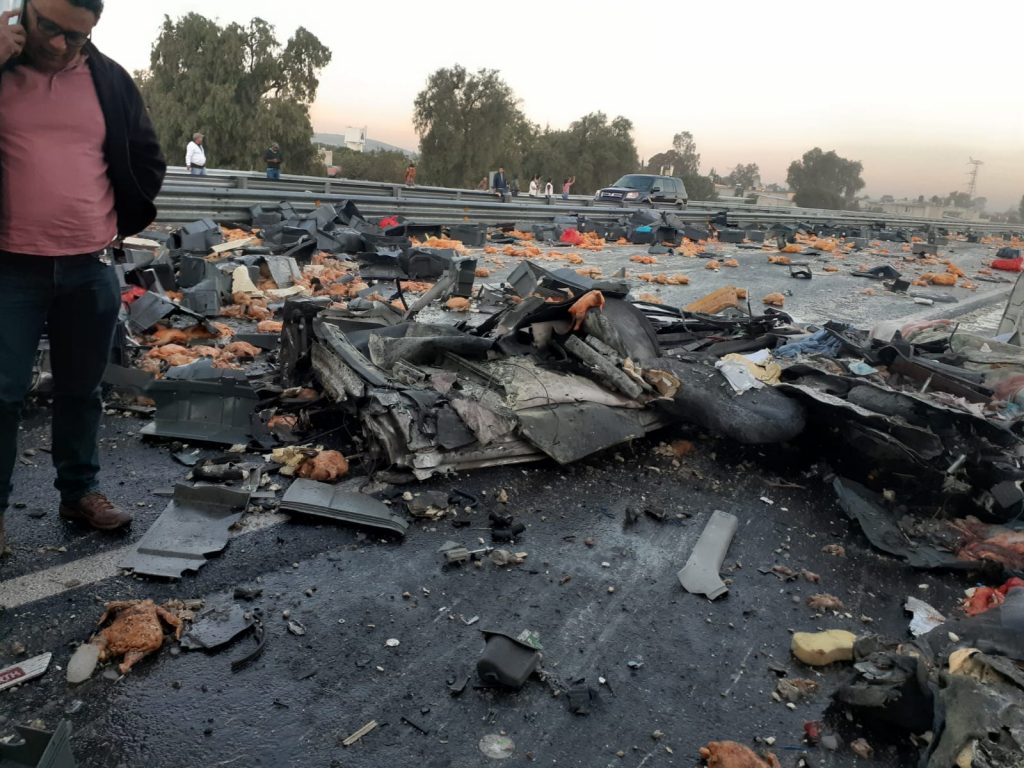 Cientos de pollos quedaron regados por la carpeta asfáltica.