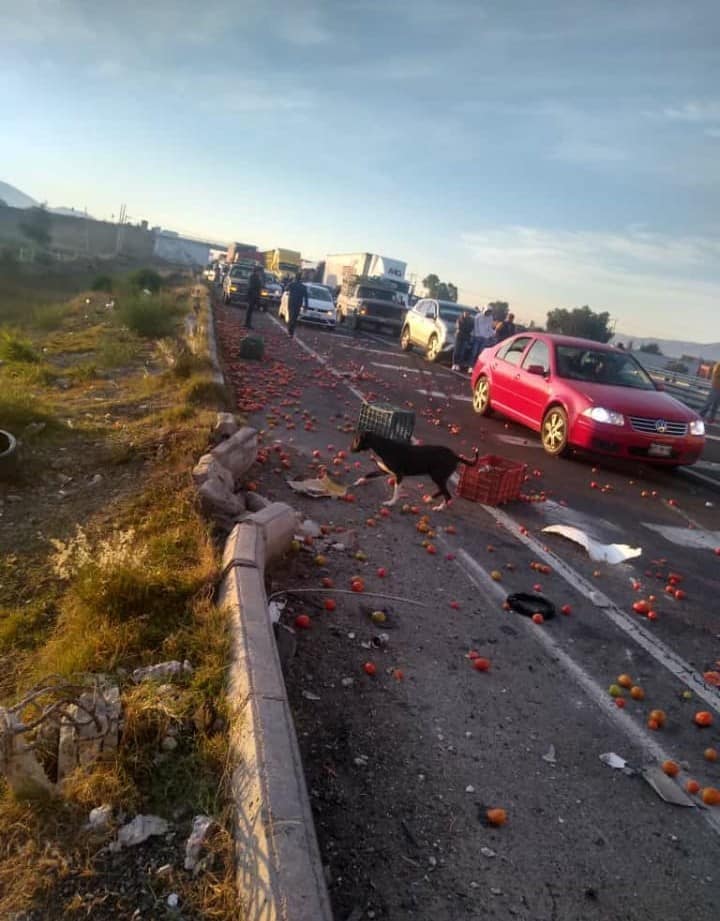 El tráiler cargado con pollo congelados volcó, cuando el conductor perdió el control de la unidad al parecer por una falla mecánica.
