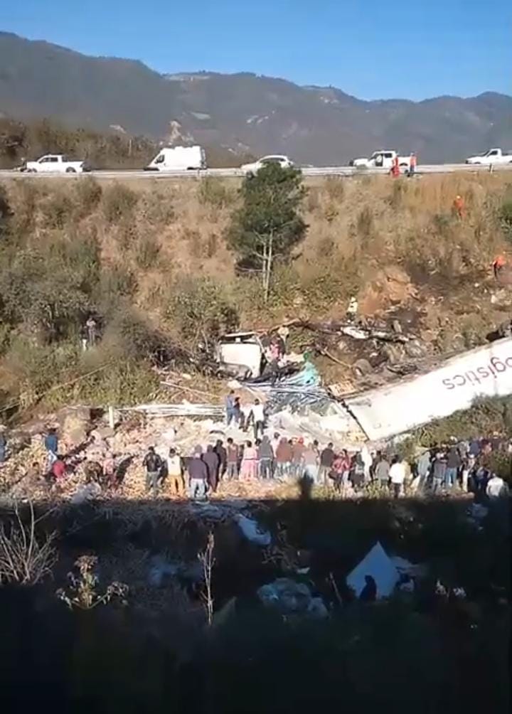 El conductor de un camión marca Kenworth color blanco y con razón social A. Logistics, remolcaba en su caja seca material metálico, pero en la zona de La Estancia perdió el control de la misma y se precipitó a un barranco de más de 50 metros de profundidad, perdiendo la vida de forma instantánea, ya que dicho conductor quedó prensado dentro de su unidad.