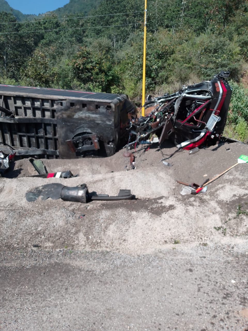 El tráiler se quedó sin frenos cuando descendía las cumbres de maltrata, por lo que el chofer decidió salirse hacia la rampa de emergencia, sin embargo, debido a la volcadura la cabina se destrozó e incendió.