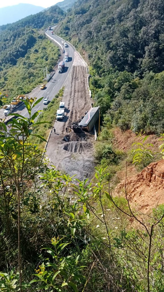 Elementos de la Guardia Nacional División Carreteras cerraron el paso en ambos sentidos mientras se realizaban las maniobras de retiro de las unidades y la limpieza del tramo afectado, lo que originó largas filas de automovilistas.
