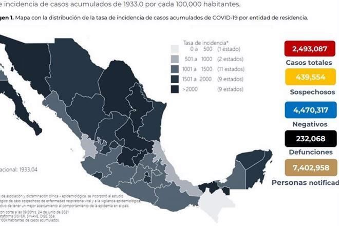Ciudad de México. – La Secretaría de Salud reportó 221 muertes más por Covid-19 en México, con lo que suman 232 mil 68; hay 2 millones 493 mil 87 casos confirmados, 5 mil 340 más que ayer.