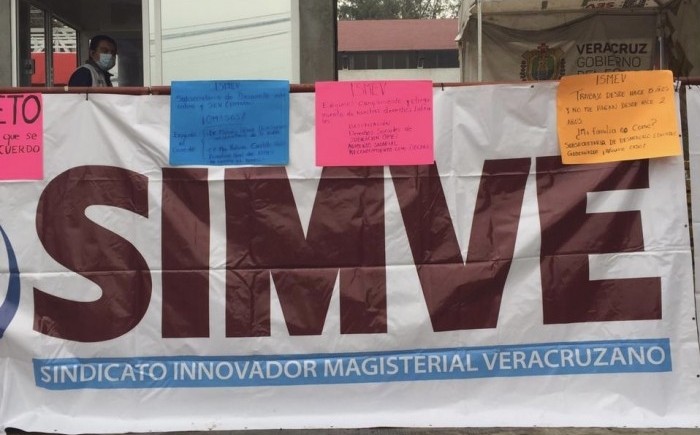 Xalapa, Ver. – Maestros que integran el Sindicato Innovador Magisterial Veracruzano se manifestaron afuera de la Secretaría de Educación de Veracruz (SEV) para denunciar tardanza en trámites pendientes, suspensiones de pagos, hostigamientos y despidos en su contra.
