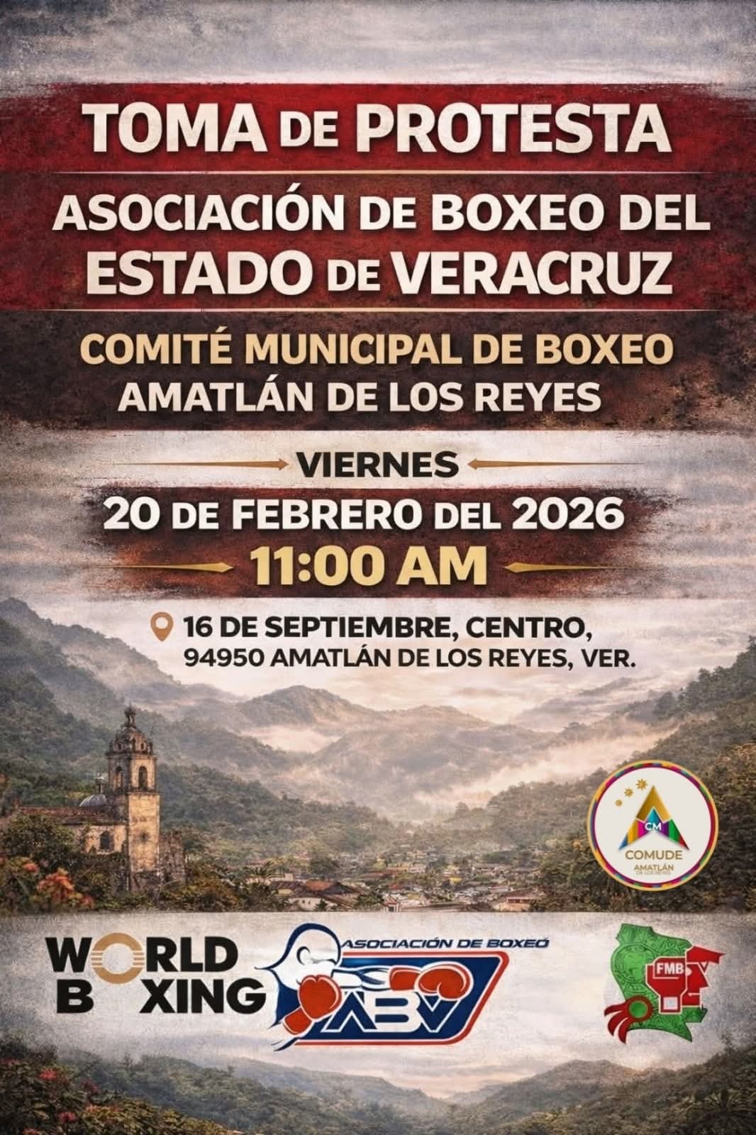 Amatlán de los Reyes, Ver.– El boxeo amateur en el municipio vivirá un momento clave este viernes 20 de febrero con la toma de protesta del Comité Municipal de Boxeo, acto convocado por la Asociación de Boxeo del Estado de Veracruz en coordinación con el Honorable Ayuntamiento.