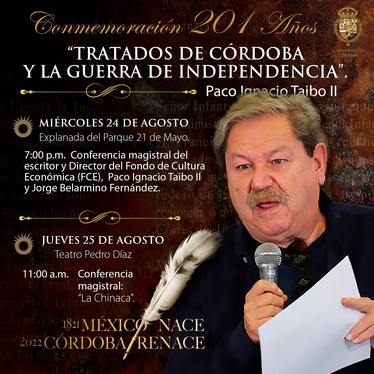 Córdoba, Ver. – El Director del Fondo de Cultura Económica (FCE) y escritor, Paco Ignacio Taibo II ofrecerá en Córdoba las conferencias magistrales: “Tratados de Córdoba y la Guerra de Independencia” y “La Chinaca”.