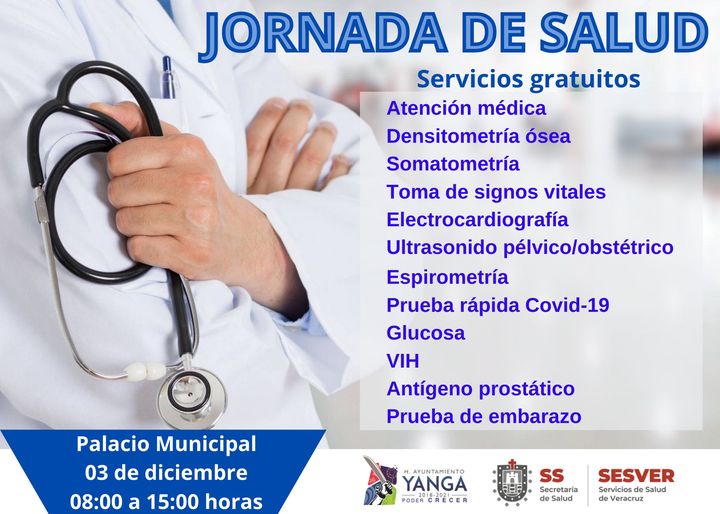 Yanga, Ver. – El Ayuntamiento de Yanga en coordinación con la Jurisdicción Sanitaria número 6 de Córdoba, realizarán una Jornada de Salud el próximo viernes 3 de diciembre.