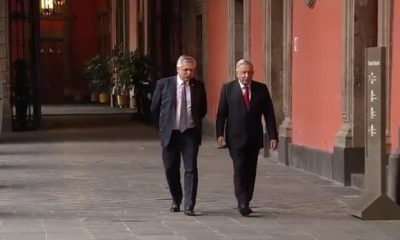 El mandatario argentino llegó este martes a este recinto, donde se realiza la conferencia de prensa matutina de su par mexicano.