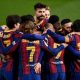 El lateral del Barça se sumó a las muestras de alegría de los jugadores tras pasar a la final de Copa del Rey