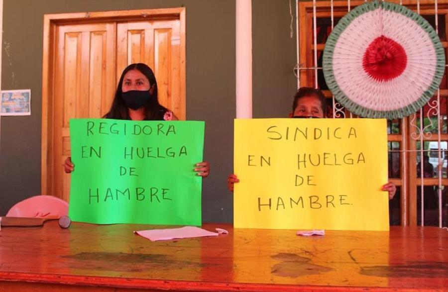 Ante la indiferencia de las autoridades encargadas de resolver dichos recursos legales, el 7 de septiembre pasado, ambas funcionarias iniciaron una huelga de hambre frente al palacio municipal, lo que obligó al gobierno del estado y a la Comisión de Derechos Humanos a intervenir y firmar una minuta para que se respetara el estado de derecho en ese municipio. Pero tan pronto se retiraron estos funcionarios, el alcalde rompió la minuta y de nuevo impidió el ingreso de la regidora y de la síndica al inmueble municipal.