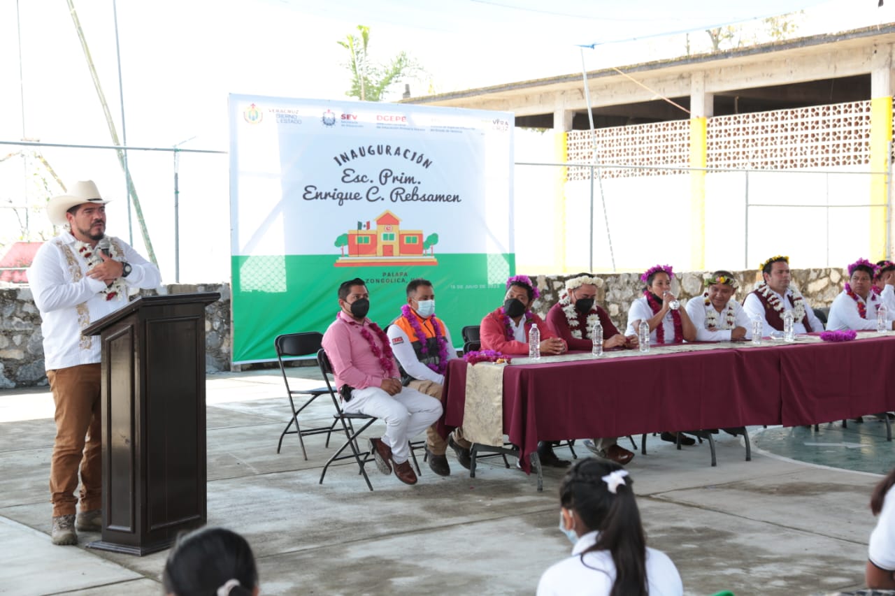Finalmente, acompañado por el alcalde de Zongolica, Benito Aguas Atlahua, y el director del Instituto de Espacios Educativos, Ricardo García Jiménez, reiteró que las niñas, los niños y jóvenes son el motor del trabajo que se realiza desde la SEV, como lo establece la Nueva Escuela Mexicana al colocar a la comunidad educativa en el centro.