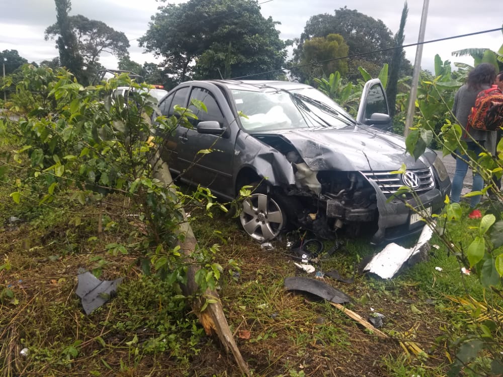 Chocamán, Ver. – Un profesor se quedó dormido al volante, lo que provocó que su automóvil se saliera de la carretera y terminara destruyendo un poste de Teléfonos de México.