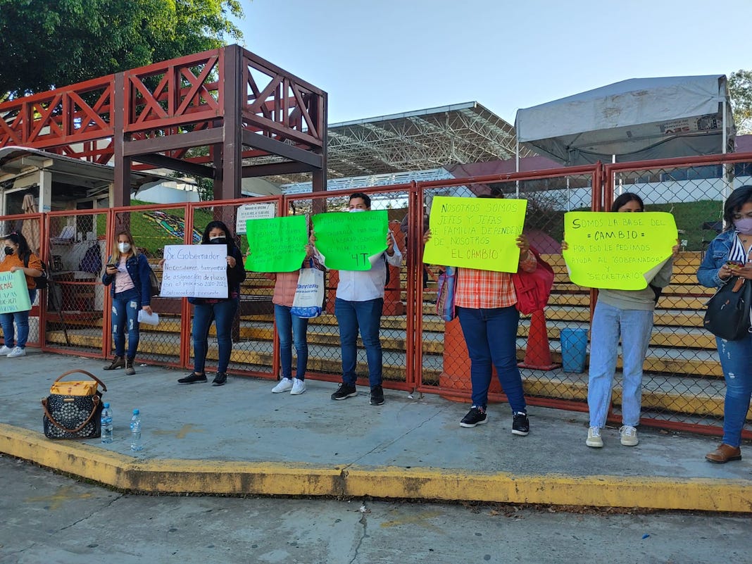 “Pedimos más vacantes y prórrogas para poder trabajar, nosotros somos el pilar de la Cuata Transformación”, advirtió uno de los docentes que se manifestó.