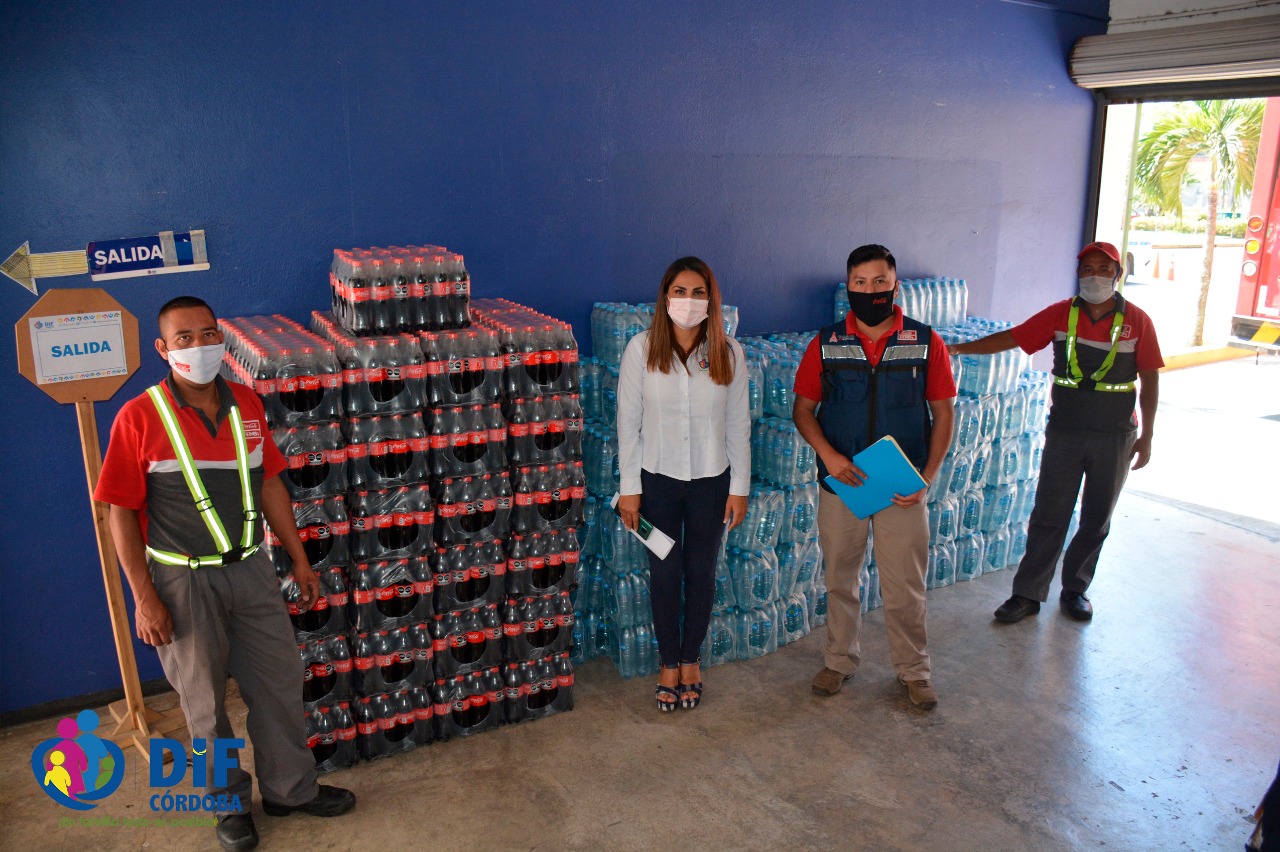 Córdoba, Ver. – Una importante donación de 3 mil 600 botellas entre aguas y coca colas, recibió este martes el Sistema Municipal para el Desarrollo Integral de la Familia (SMDIF), por parte del grupo Coca-Cola FEMSA con el fin de colaborar a la hidratación en las distintas sedes de vacunación contra el COVID-19.