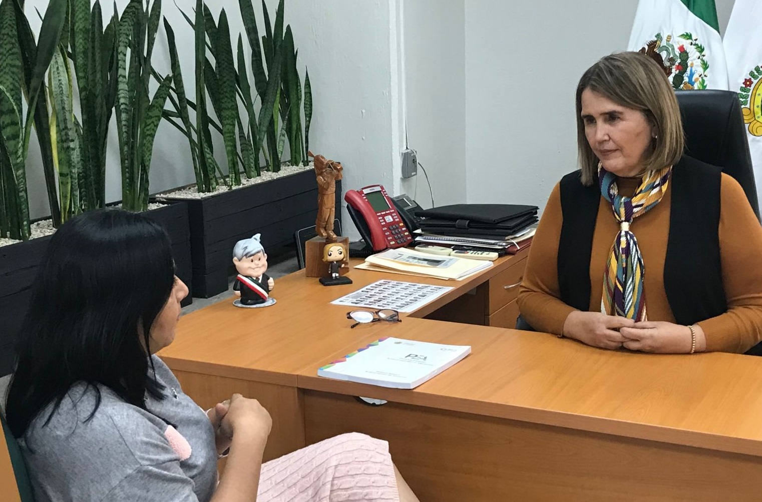 Xalapa, Ver. – La presidenta de la Mesa Directiva de la LXVI Legislatura del Estado de Veracruz, diputada Cecilia Guevara, recibió de la titular de la Secretaría Ejecutiva del Sistema Estatal Anticorrupción, Adriana Paola Linares Capitanachi, el documento denominado Política Estatal Anticorrupción (PEA).