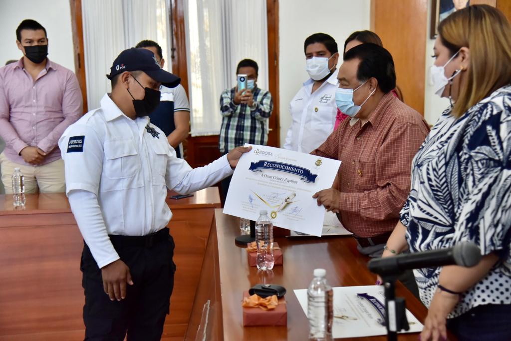 Córdoba, Ver.- El Ayuntamiento de Córdoba reconoció a tres elementos de la Policía Municipal y uno de Tránsito y Seguridad Vial por su desempeño, buena conducta y por los actos sobresalientes que han tenido en estos tres meses de la Administración Municipal para bien de la protección de la ciudadanía y por su labor para la prevención de delitos.